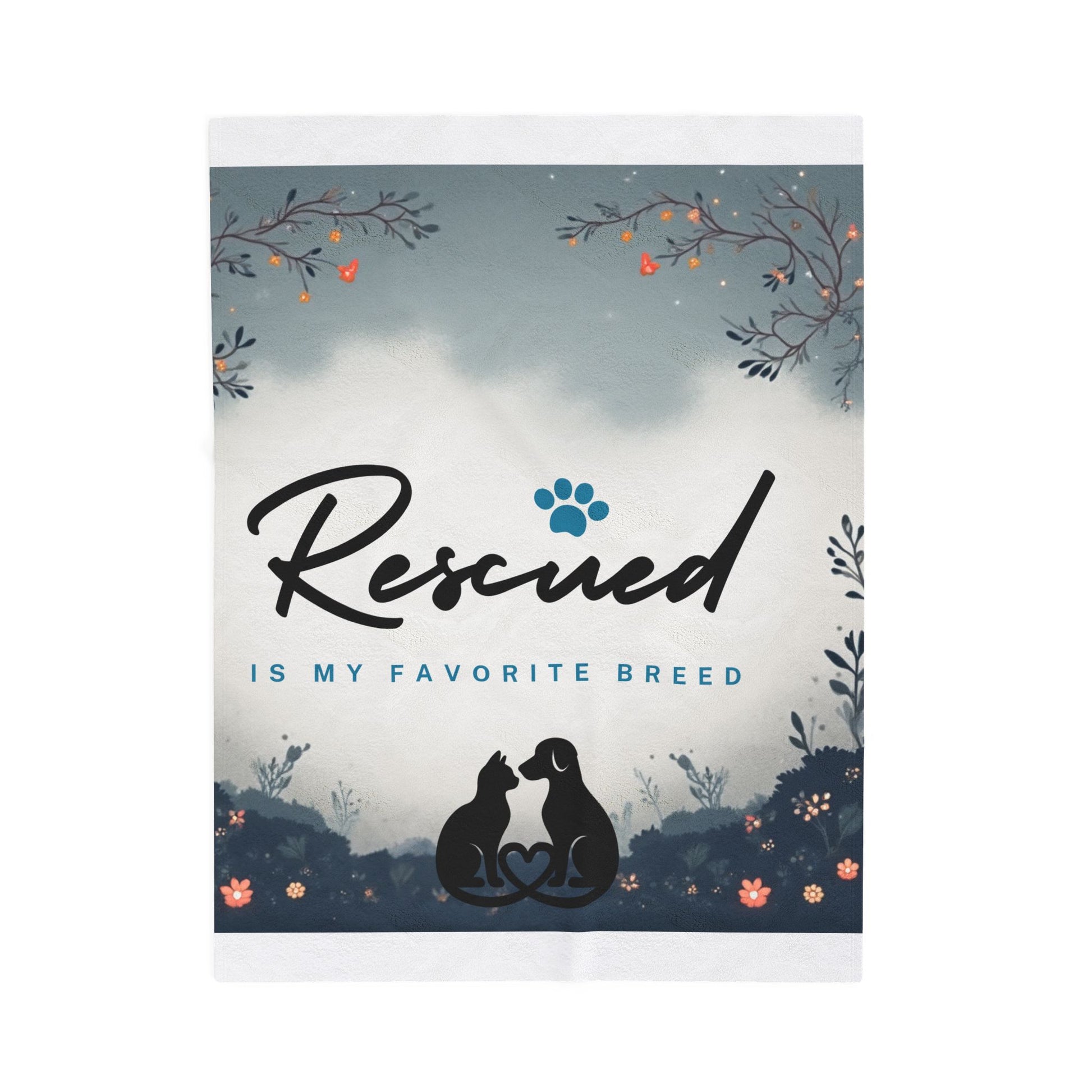 Velveteen Plush Blanket - Rescued is my favorite breed adopt don't shop